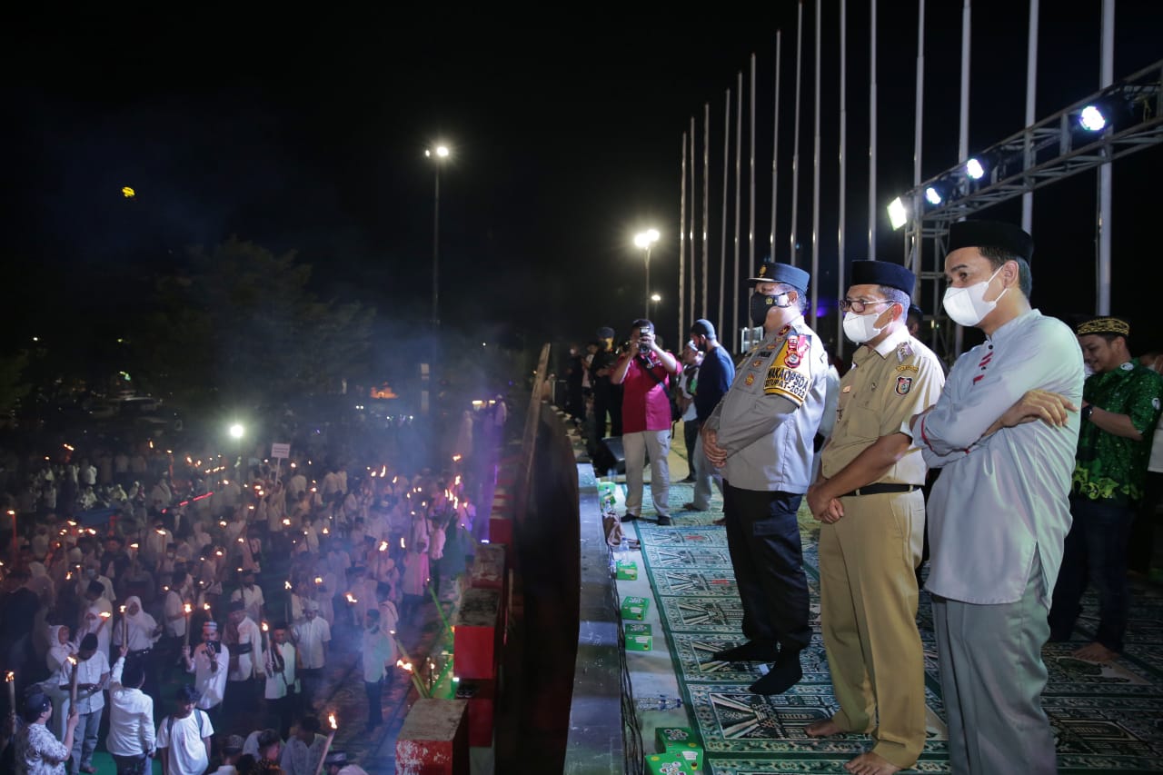 “Biasanya takbir dilaksanakan oleh masing – masing secara berkelompok namun kali ini dilaksanakan bersama sehingga tidak bergerombol. Terima kasih pak Walikota sehingga kegiatan ini terselenggara dengan baik,” ujar Wakapolda.