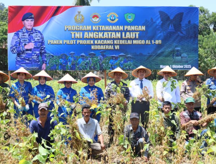 Kegiatan ketahanan pangan TNI AL panen Kacang Kedelai Mugo AL 1-89 Kodaeral VI tersebut digelar dalam rangka memperingati HUT Ke-80 TNI Tahun 2025.