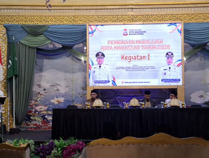 MEDIAWARTA,-Pemerintah Kota Makassar melalui Bagian Kesejahteraan Rakyat (Kesra) menyelenggarakan Pembinaan Mubaligh Kota Makassar Tahun 2026 dengan tema “Mubaligh sebagai Mitra Strategis Pemerintahan dalam Mewujudkan Makassar Unggul, Aman, Inklusif, dan Berkelanjutan”. Kegiatan ini berlangsung di Gedung Islamic Centre IMMIM, Senin 9 Februari 2026).