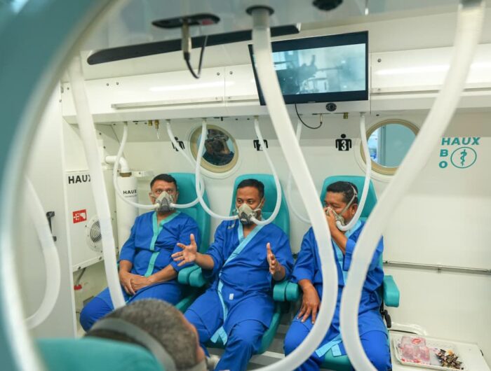 Selanjutnya, ia mengikuti uji coba di dalam chamber selama 20 menit dengan tekanan udara setara kedalaman 7 meter di bawah permukaan laut. Sebuah simulasi yang menggambarkan kondisi nyata dalam dunia penyelaman.