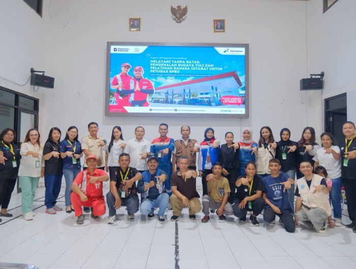 MEDIAWARTA, BITUNG — Dalam rangka memperingati Hari Bahasa Isyarat Internasional yang diperingati setiap 23 September, Pertamina Patra Niaga Regional Sulawesi melalui unit operasionalnya, Integrated Terminal (IT) Bitung, menggelar kegiatan bertajuk “Melayani Tanpa Batas: Pengenalan Budaya Tuli dan Pelatihan Bahasa Isyarat untuk Petugas SPBU” di Aula Kantor IT Bitung.