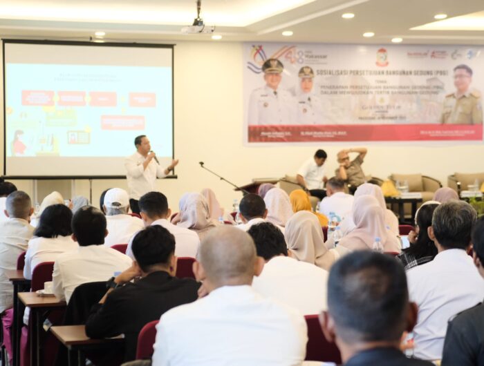 MEDIAWARTA,MAKASSAR,-Dinas Penataan Ruang (DISTARU) Kota Makassar kembali melaksanakan Sosialisasi Persetujuan Bangunan Gedung (PBG) yang digelar di Hotel Grand Tulip Essential. Kegiatan ini mengangkat tema “Penerapan PBG dalam Mewujudkan Tertib Bangunan dan Gedung”, sebagai upaya pemerintah daerah untuk meningkatkan pemahaman masyarakat mengenai regulasi terbaru di bidang bangunan gedung.