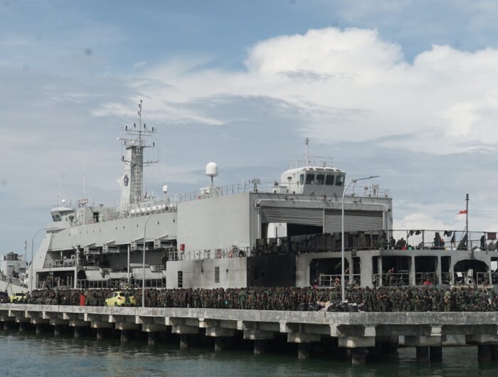 Suasana di dermaga pagi itu penuh haru dan kebanggaan. Isak tangis keluarga yang melepas keberangkatan suami, anak, dan saudara mereka berpadu dengan semangat pantang menyerah khas prajurit. Di tengah lambaian tangan dan derap langkah yang tegas, tergambar jelas ketabahan dan keikhlasan keluarga besar TNI dalam mendukung pengabdian anak bangsa untuk menjaga keutuhan dan kedaulatan Negara Kesatuan Republik Indonesia.