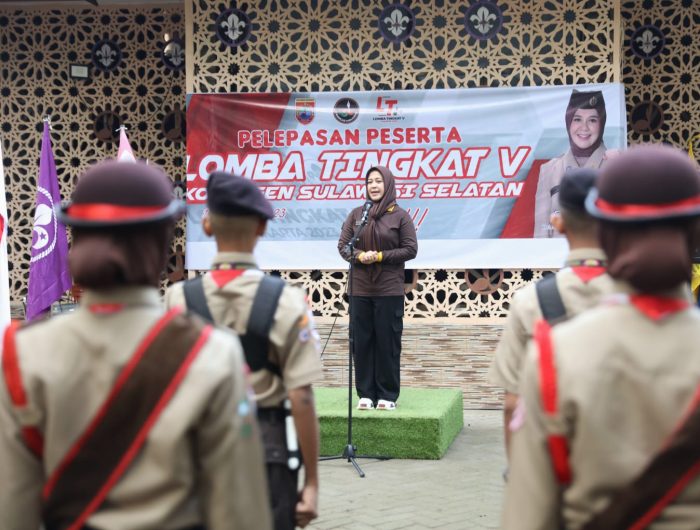 MEDIAWARTA, MAKASSAR – Wakil Wali Kota Makassar, Fatmawati Rusdi resmi melepas putra-putri Pramuka Kota Makassar yang mewakili Sulawesi Selatan bertanding Lomba Tingkat Regu Pramuka Penggalang Lima (LT V) di Cibubur, Jakarta Timur.