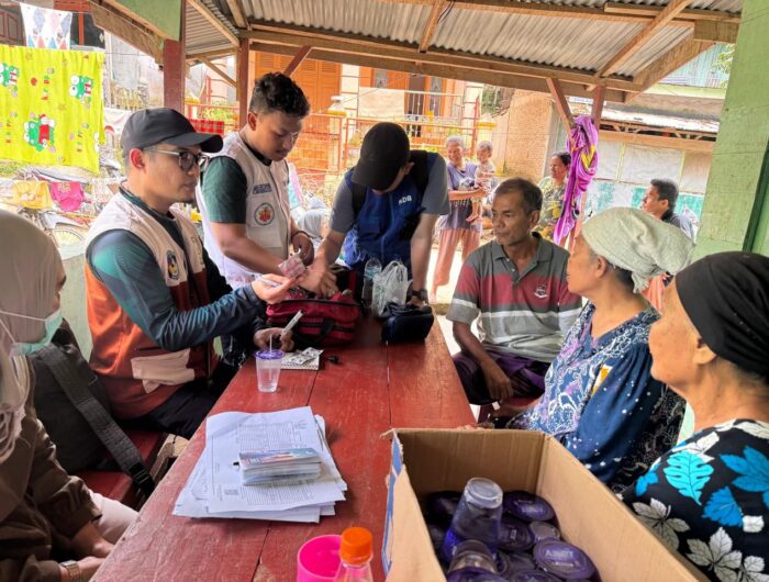 Posko ini menjadi titik layanan kesehatan perdana yang menjangkau langsung masyarakat terdampak, khususnya kelompok rentan. Dalam kegiatan tersebut, Tim Medis UMI melaksanakan pemeriksaan kesehatan umum, pengukuran tanda vital, pemberian pengobatan, serta distribusi susu bagi balita, ibu hamil, dan lanjut usia sebagai kelompok prioritas dalam kondisi darurat pascabencana.