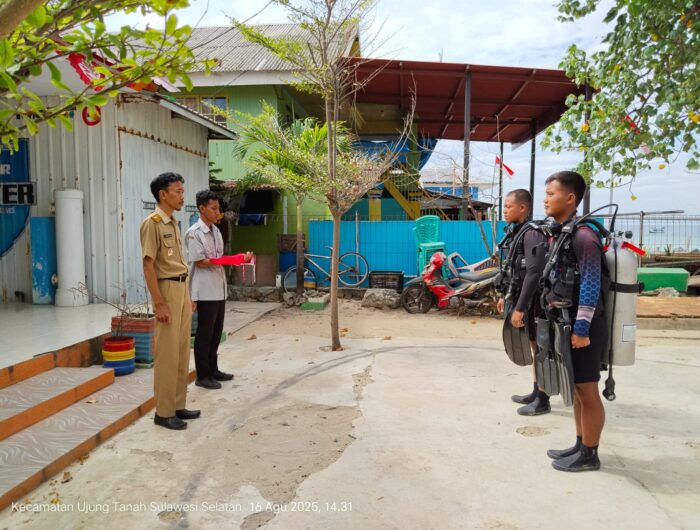 MEDIAWARTA,- Dalam rangka memperingati Hari Kemerdekaan Republik Indonesia ke-80 tahun 2025, prajurit Komando Daerah Militer Angkatan Laut Vl (Kodaeral VI) menggelar aksi heroik dengan mengibarkan Bendera Merah Putih di kedalaman laut Pulau Barrang Caddi dan Pos TNI AL (Posal) Pinrang, Sulawesi Selatan. Kegiatan ini menjadi simbol perjuangan dan semangat nasionalisme yang membara dalam menjaga kedaulatan dan keutuhan Negara Kesatuan Republik Indonesia (NKRI).