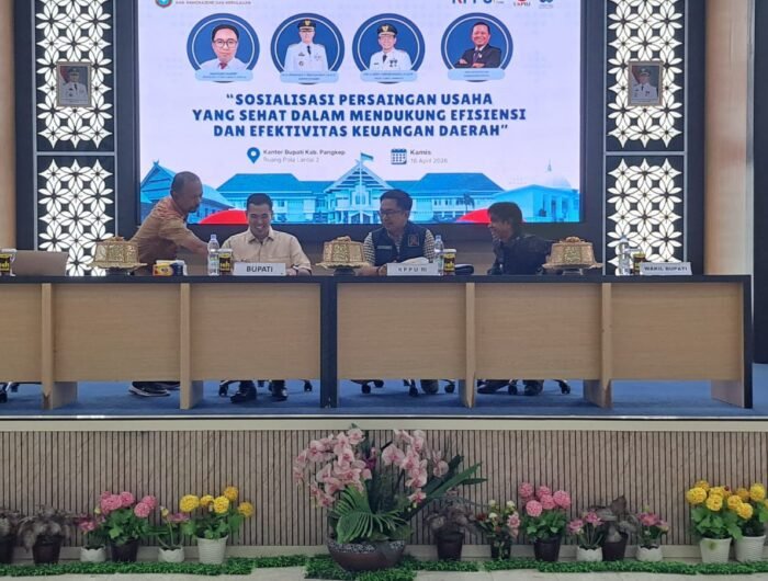 MEDIAWARTA,-Plt. Kepala KPPU Makassar, Hasiholan Pasaribu hadir selaku narasumber pada kegiatan sosialisasi persaingan usaha yang digelar Pemerintah Kabupaten Pangkep. Sosialisasi ini di gelar di ruang pola kantor Bupati Pangkep pada Kamis (16/4/2025). kegiatan ini mengangkat tema “sosialisasi persaingan usaha yang sehat dalam mendukung efisiensi dan efektivitas keuangan daerah”.