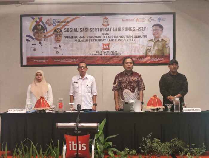 MEDIAWARTA, MAKASSAR — Dinas Penataan Ruang Kota Makassar kembali menggelar kegiatan sosialisasi terkait pemenuhan standar teknis bangunan gedung melalui Sertifikat Laik Fungsi (SLF), Rabu (19/11/2025), di Hotel Ibis Makassar City Center.