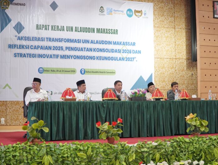 MEDIAWARTA,-Universitas Islam Negeri Alauddin Makassar menggelar Rapat Kerja (Raker) bertajuk Akselerasi Transformasi UIN Alauddin Makassar: Refleksi Capaian 2025, Penguatan Konsolidasi 2026, dan Strategi Inovatif Menyongsong Keunggulan 2027. Kegiatan ini berlangsung selama dua hari, Selasa–Rabu, 20–21 Januari 2026, bertempat di Sultan Alauddin Hotel & Convention.