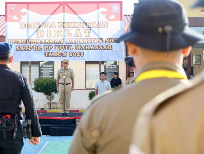 Pendidikan dan Latihan Dasar (Diklat) Pengembangan Kapasitas SDM Satpol PP dibuka Wali Kota Makassar Moh Ramdhan Pomanto, di Mako Brimob Polda Sulsel, Senin (24/07/2023).