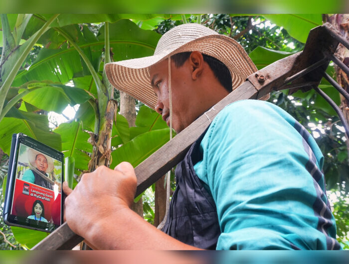 Abang, salah satu pelanggan Telkomsel, memanfaatkan layanan video call GraPARI untuk melakukan reaktivasi kartu Telkomsel miliknya dari kebun di halaman rumahnya. Inovasi ini memudahkan pelanggan mengakses layanan tanpa harus datang langsung ke GraPARI. Foto: Masyudi Firmansyah/Mediawarta