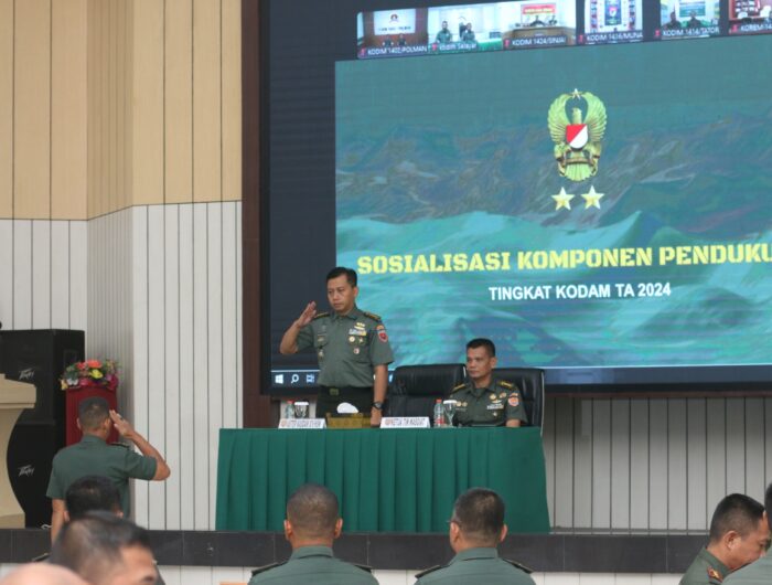 MEDIAWARTA, MAKASSAR – Asisten Teritorial (Aster) Kasdam XIV/Hasanuddin Kolonel Kav Eko Saptono K., S.E., M.M., memimpin sosialisasi komponen pendukung tingkat Kodam TA. 2024 yang berlangsung di Balai Pertemuan Hasanuddin (BPH) Makodam, Jl. Urip Sumoharjo, Kota Makassar, pada Selasa (30/07/2024).